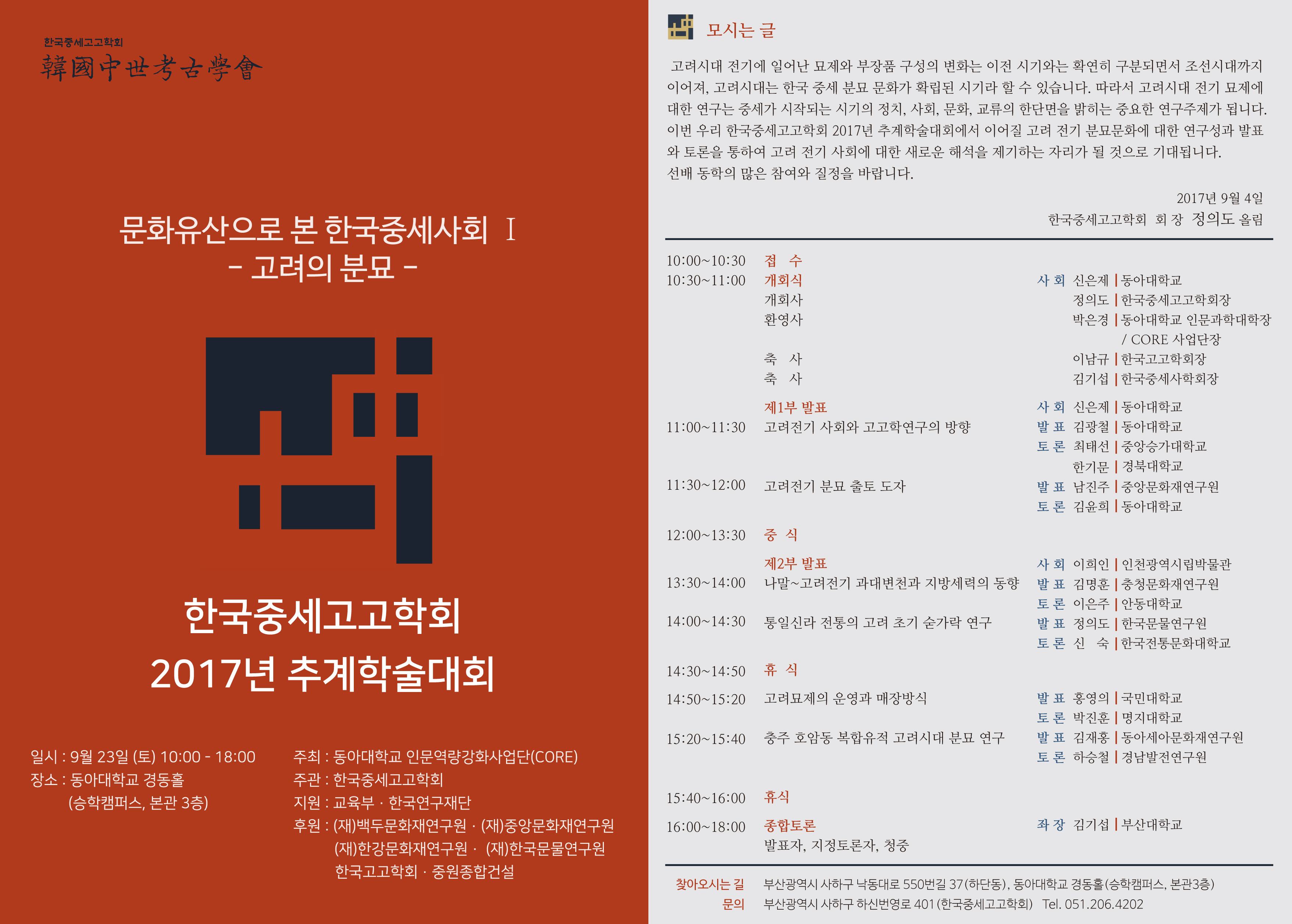 2017년 추계학술대회<문화유산으로 본 한국중세학회Ⅰ-고려의 분묘>