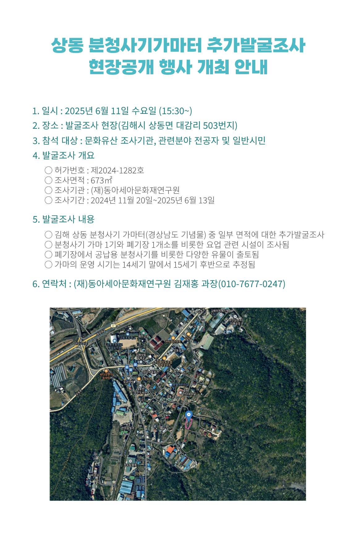 [현장 공개]동아세아문화재연구원 김해 상동 분청사기가마터 추가발굴조사 현장공개 행사 개최 안내