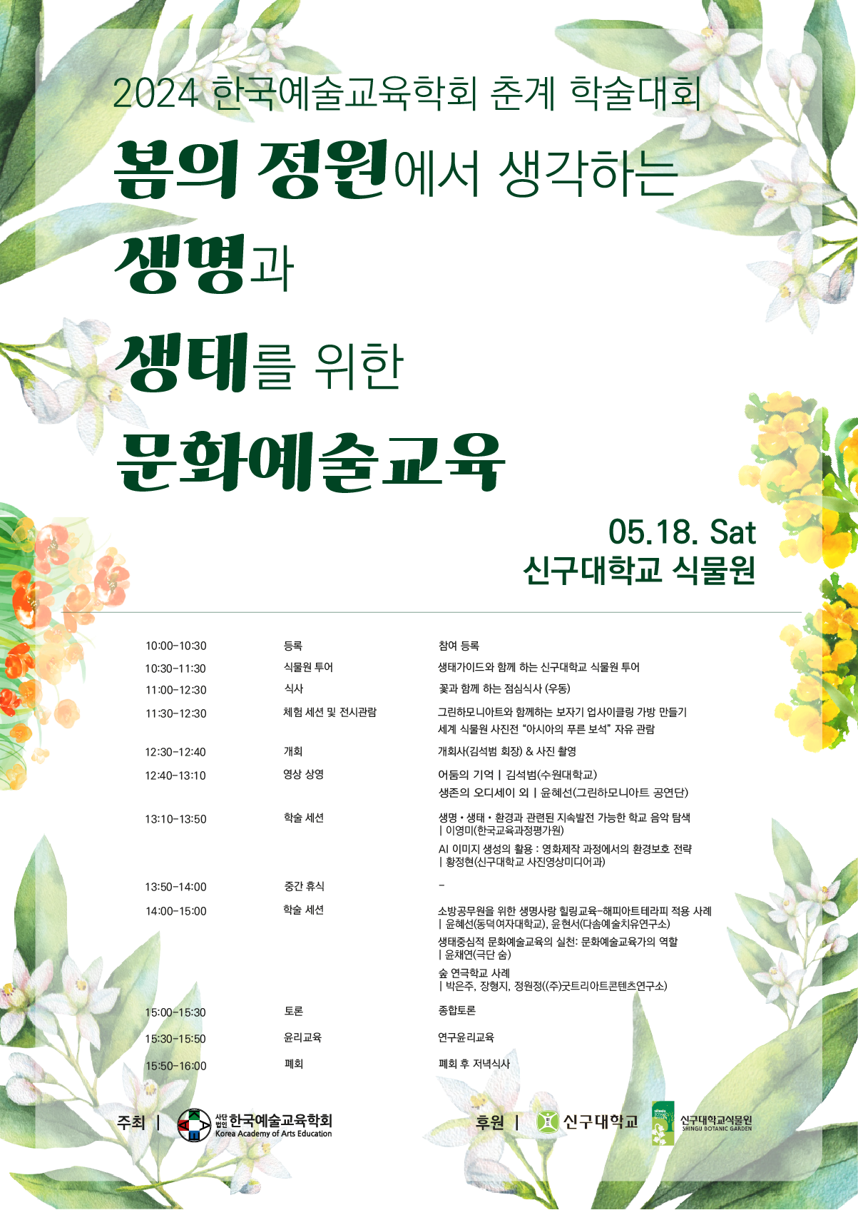 - 주최・주관_(사)한국예술교육학회 / 후원_신구대학교, 신구대학교 식물원