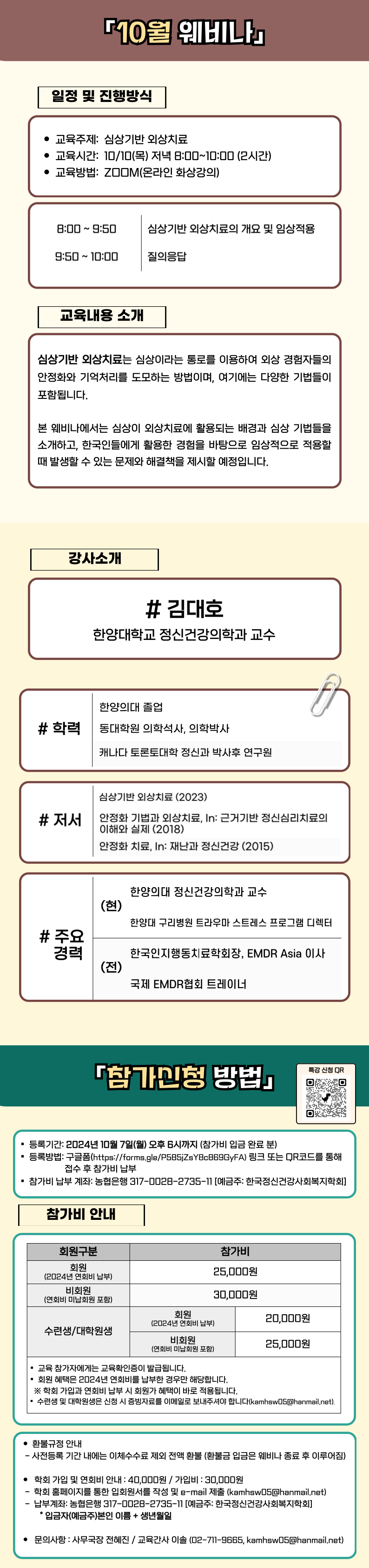 ▣ 교육시간 및 방법: 2024년 10월 10일(목) 저녁 8:00~10:00 / ZOOM (온라인 화상강의)