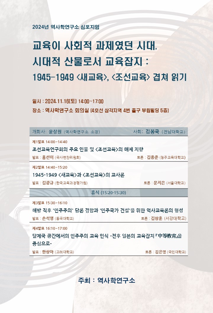 제목: 교육이 사회적 과제였던 시대, 시대적 산물로서 교육잡지: 1945-1949 <새교육>, <조선교육> 겹쳐 읽기
