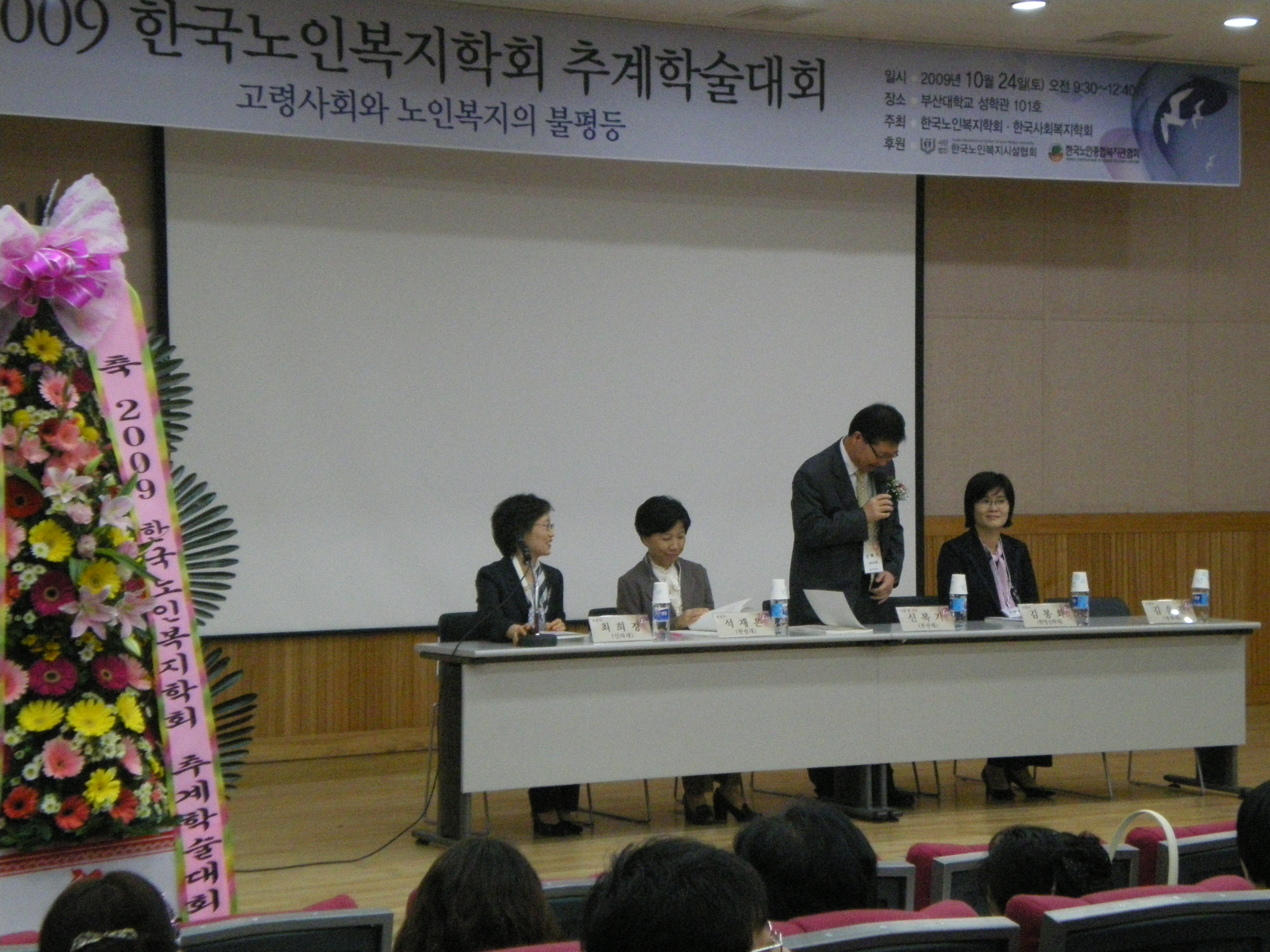 2009년 추계학술대회를 ‘고령사회와 노인복지의 불평등’이라는 주제를 가지고 부산대학교에서 200여명이 참석한 가운데 성공적으로 개최하였다. 성별간 노인복지의 불평등(석재은 교수, 한림대), 사회계층간 노인복지의 불평등(윤성호 교수, 동서대), 지역간 노인복지의 불평등(조성희 교수, 순천향대)에 대한 훌륭한 발표가 있었으며 주제별로 토론이 진행되었다. 발표와 토론 과정에서 학문적으로 크게 기여할 수 있는 연구의 방향성이 제시되었으며, 국가의 노인복지정책의 발전에 공헌할 수 있는 대책들이 논의되었다.