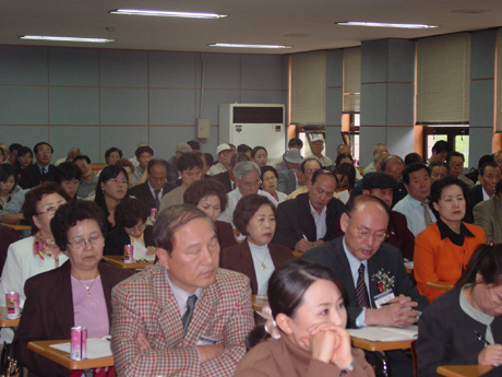 2002년 10월 12일(토) 서울대학교 사회동에서 학회 회원 및 주요인사 160여명이 참석한 가운데 <노인복지와 노권운동>이라는 대주제로 열린 2002년 추계학술대회에서 참석자들이 주의깊게 주제 발표를 경청하고 있다. / 촬영자:옥재은