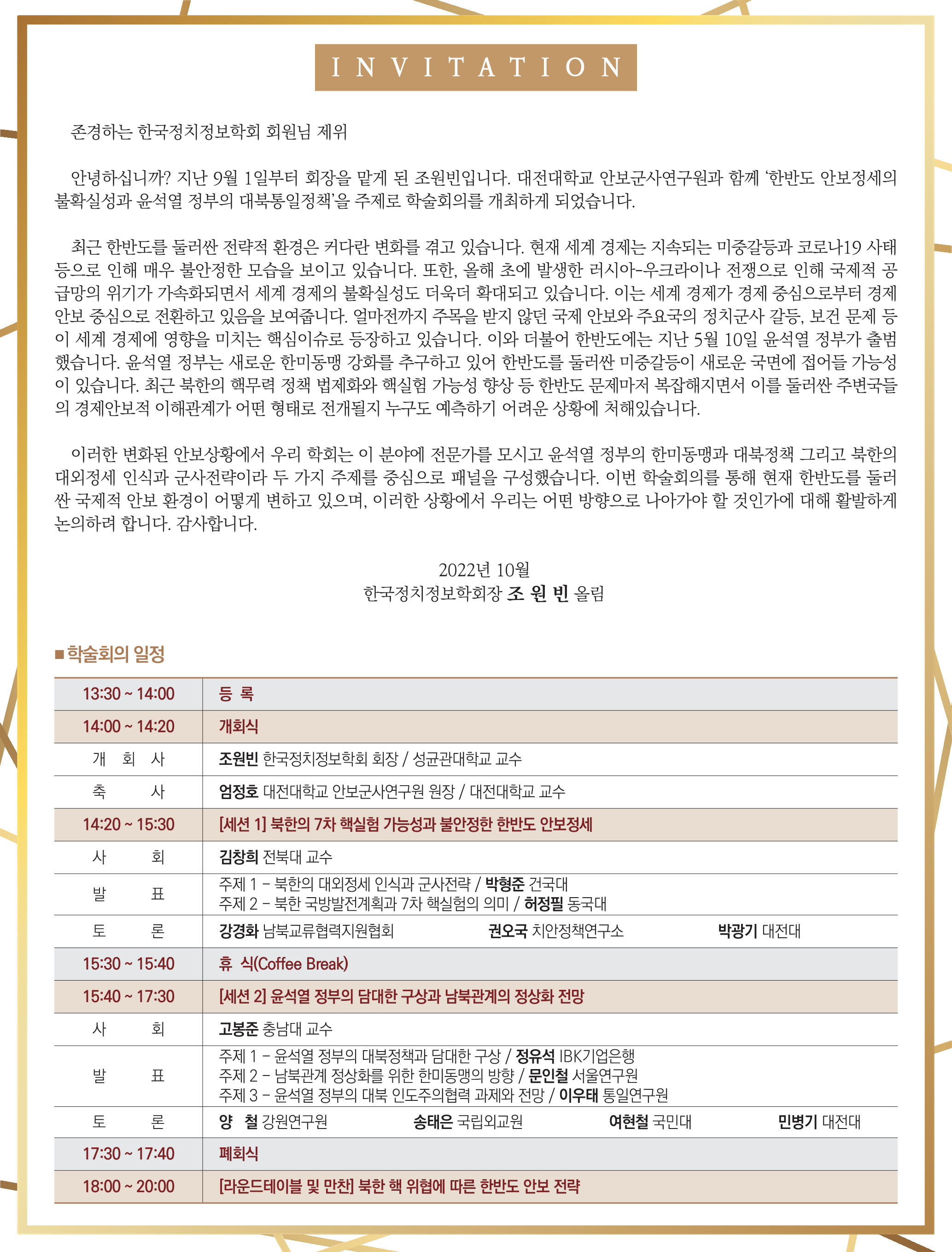 한국정치정보학회-대전대 안보군사연구원 2022 공동학술회의 개최 안내
