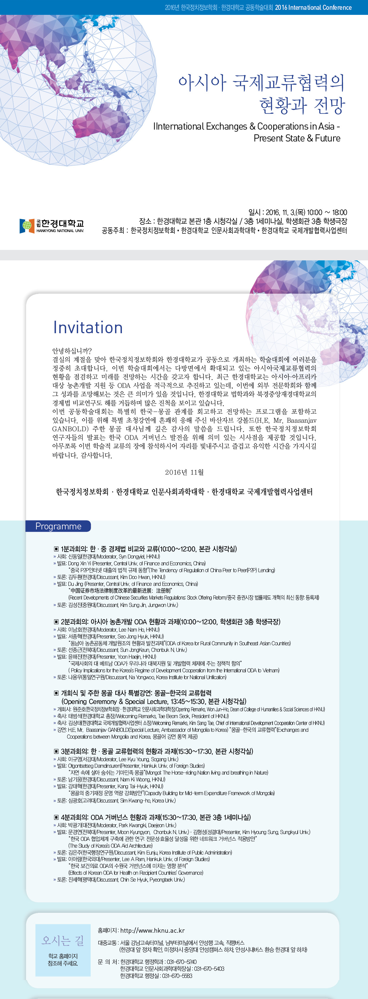 * 장소: 한경대학교 본관 1층 시청각실·3층 1세미나실, 학생회관 3층 학생극장